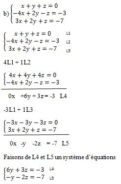 triangulée, on prend la ligne 4 et on y remplace z par sa valeur pour trouver