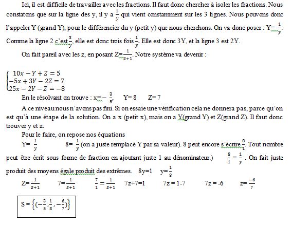 Il est mieux d’encadrer votre ensemble solution. Pour écrire la solution, on commence par écrire x, puis y et on finit par z.