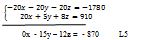 En ajoutant -20 à la première ligne et 1 à la troisième ligne, on annule les x dans la ligne 1 et la ligne 3. On aura donc ceci : -20 L1 + 1 L3