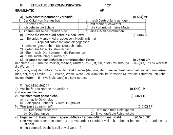 Zum Beispiel: 1) Anaba ist: a-Lehrerin; b- Marktfrau; c- Hausfrau
