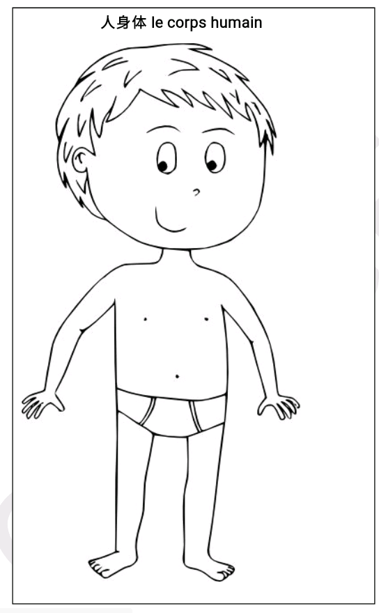 找出6个身体的部分 repérer 6 partie du corps humain sur le dessin en vous servant des mots suivants