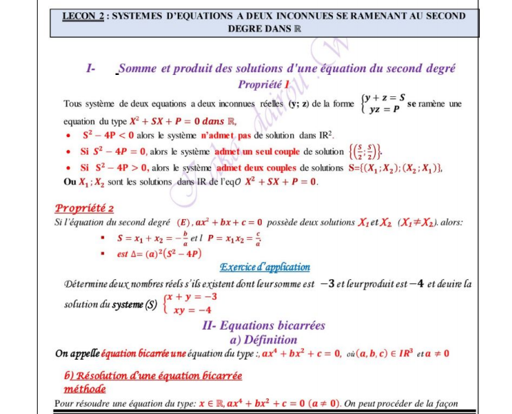 Système d'équations à deux inconnus se rapportant au deuxième degré dans R