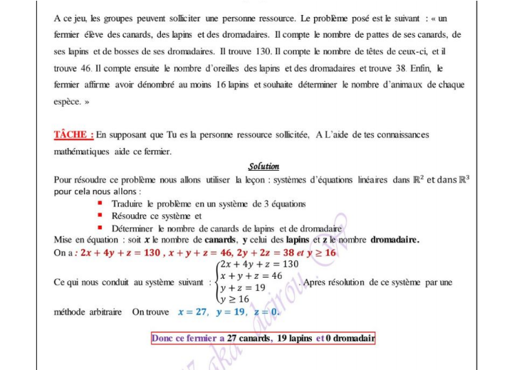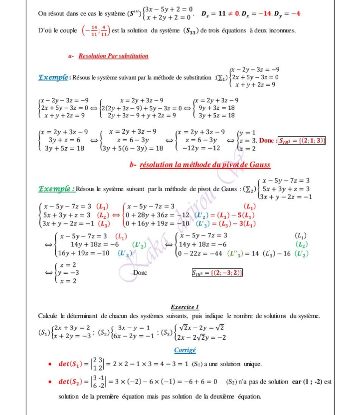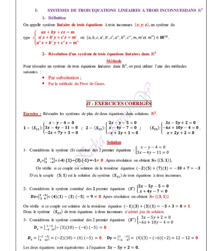 Systèmes de trois équations linéaires à trois inconnus