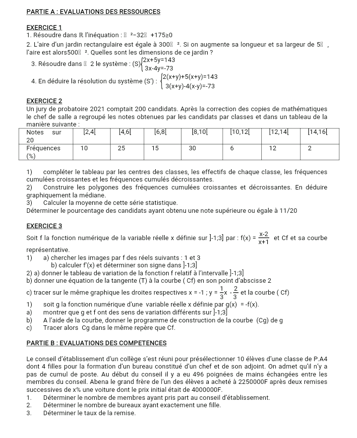 • Epreuves Mathématique 1ère A4