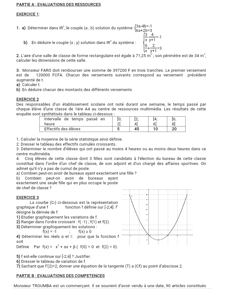 Epreuves Mathématique 1ère A4