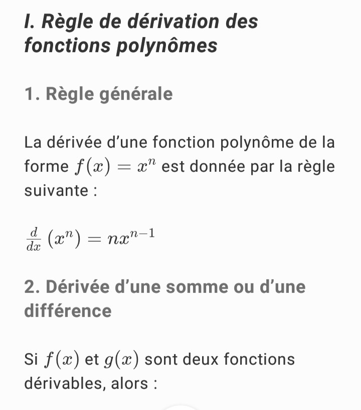 La dérivée d' une fonction