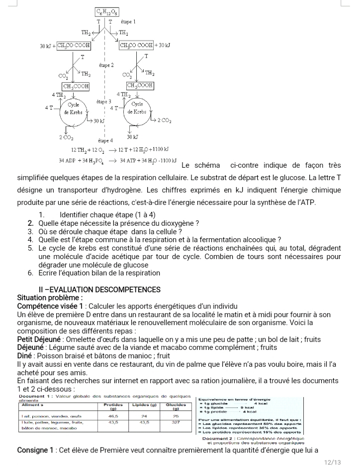 Exercices et Travaux dirigés SVTEEHB 1ère D