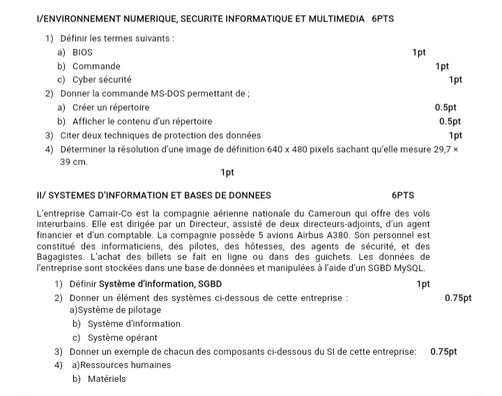 Épreuves informatique 1ère C
