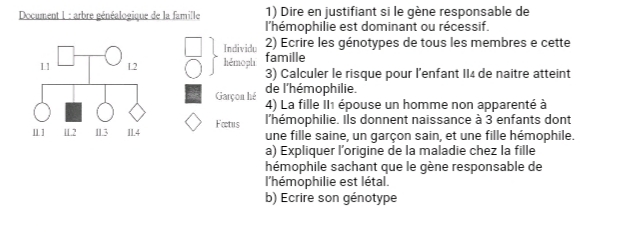 L’arbre généalogique ci-dessous est celui d’une famille dont un garçonest hémophile.