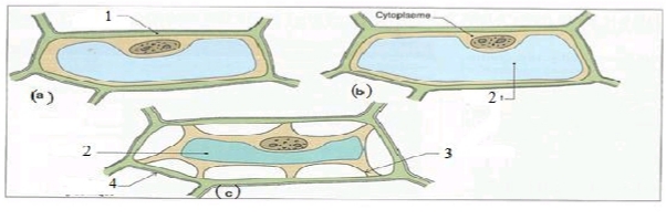 4 a) Nommer l’élément 3 et expliquer ce qui se passerait si la cellule c’était placée dans le même milieu que la cellule b.