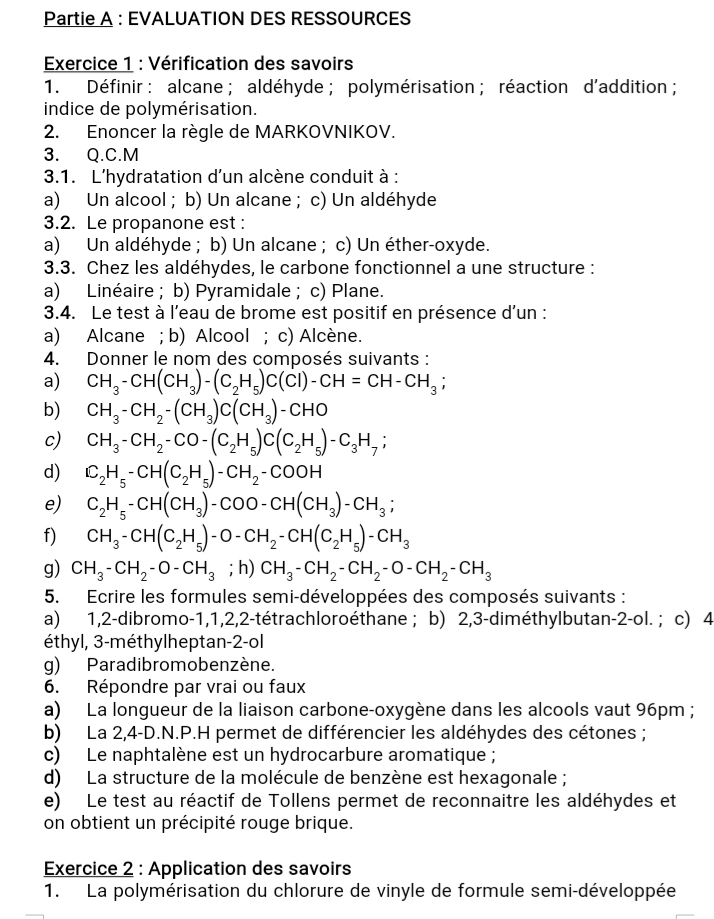 Épreuve Chimie 1ère C