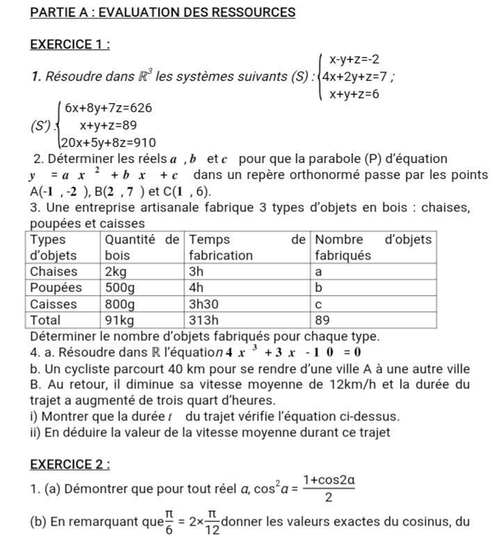 Epreuves Mathématiques 1ère D