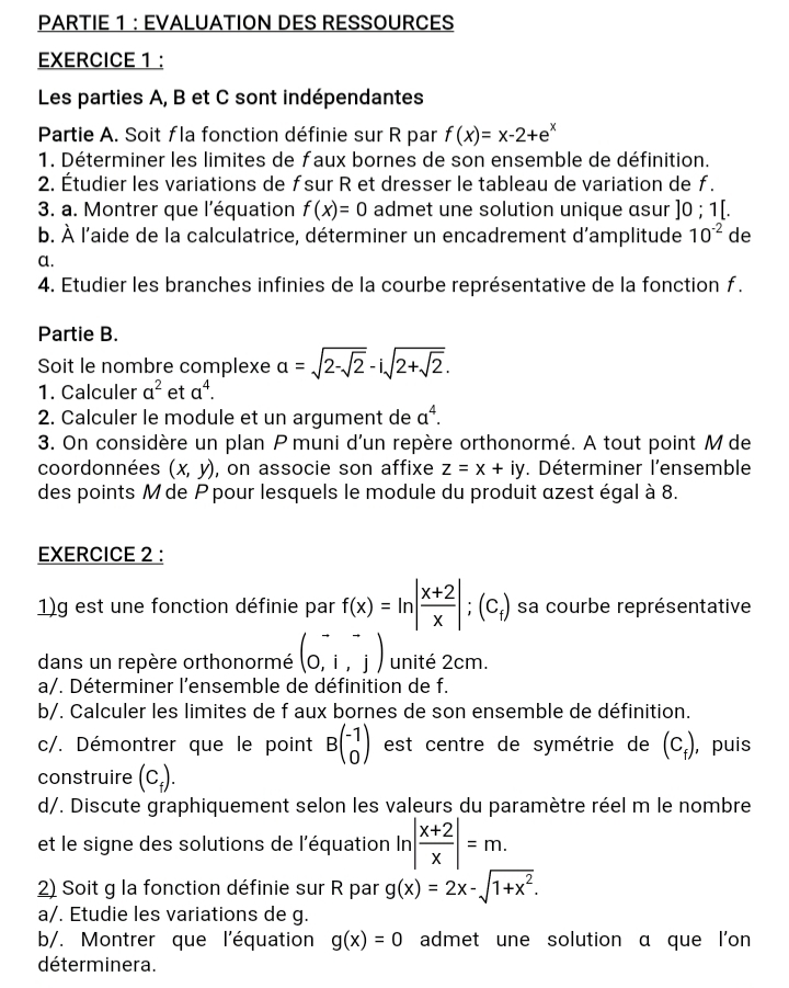 Épreuve Mathématiques Tle D
