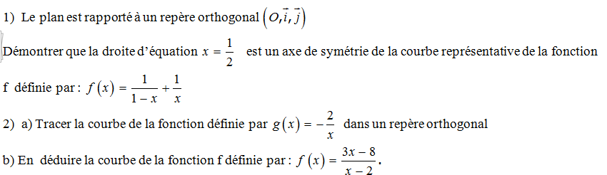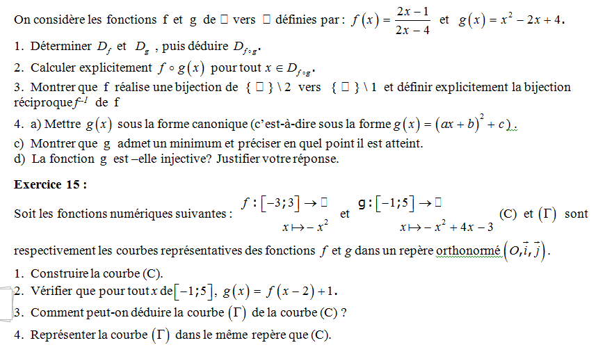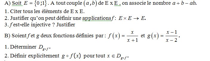Travaux Dirigés Math 1ère D fiche 2 (Fonctions : Generalités et études)
