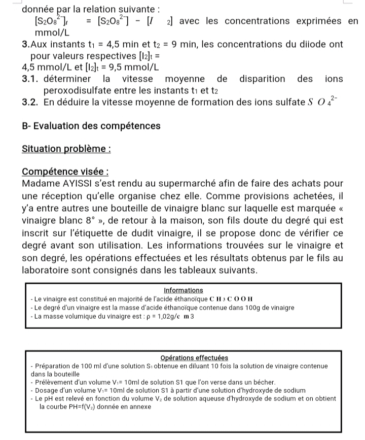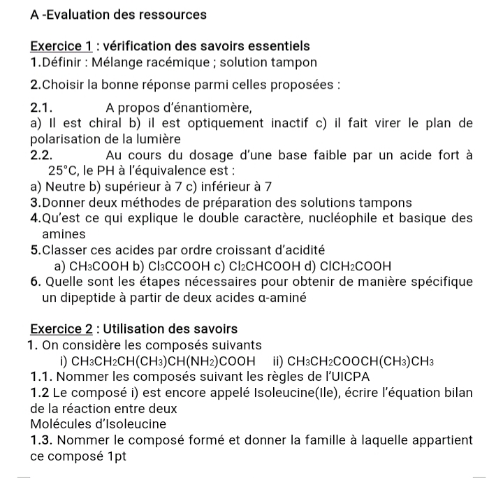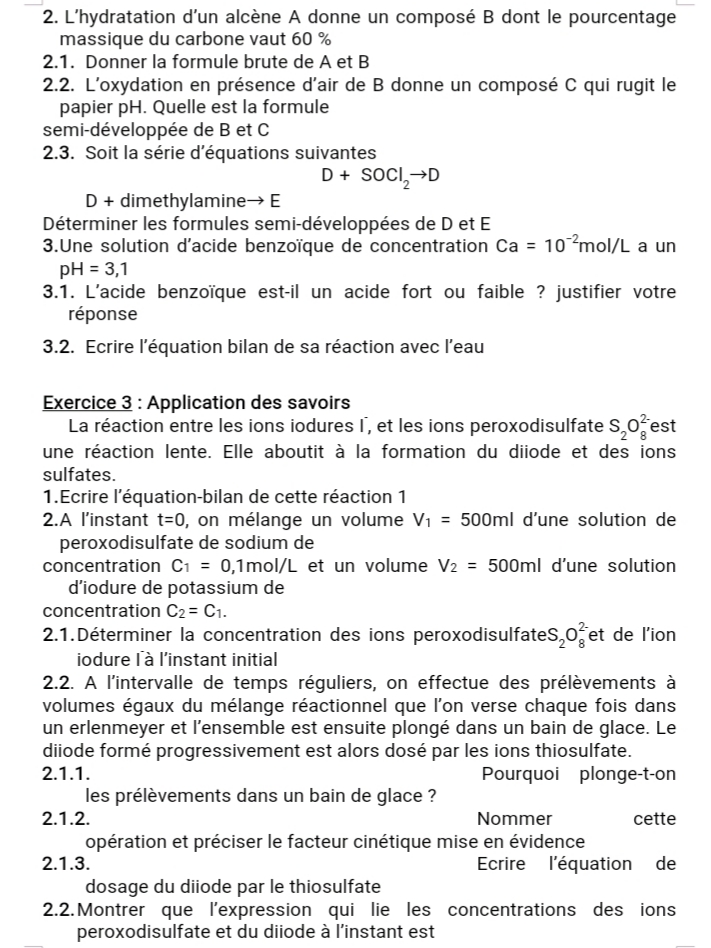 Épreuve Chimie Tle C