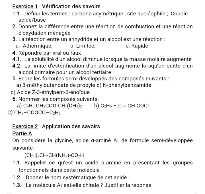 Épreuve Chimie Tle C