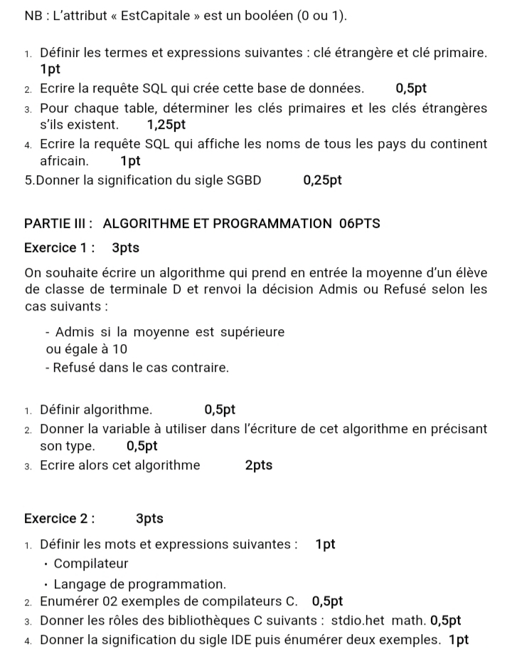 Épreuve Informatique Tle C