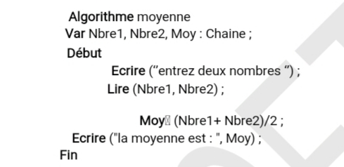 B) pour calculer la moyenne de deux nombres réels un élèves écrit l’algorithme suivant :