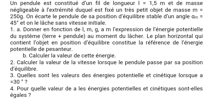 Exercice physique 1ère C