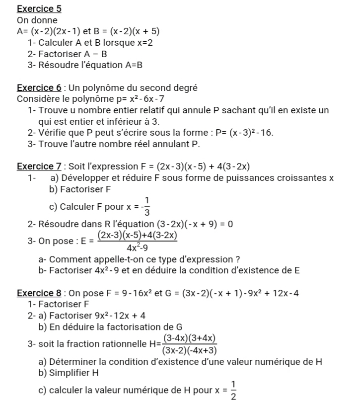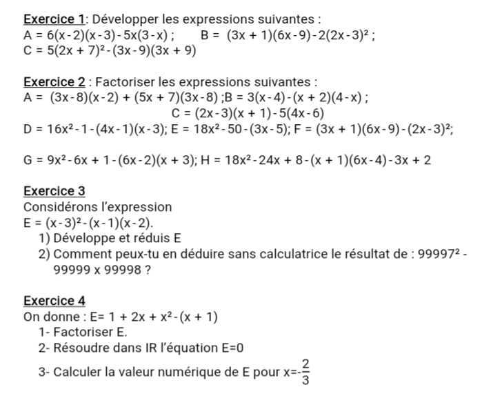 TD développement, factorisation et fraction rationnelle 3e