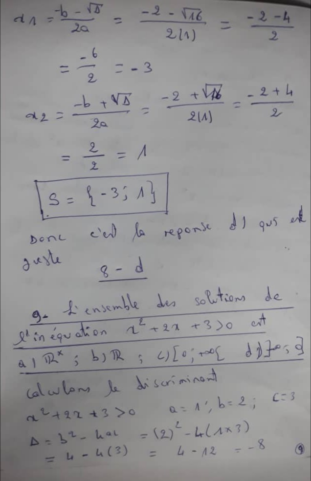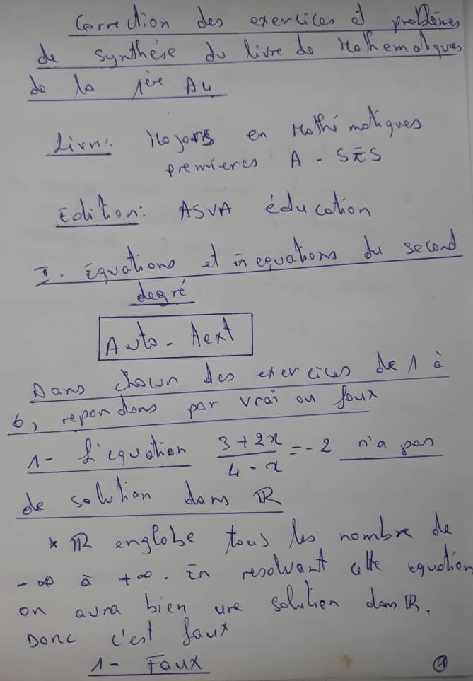 Correction des exercices du livre de mathématiques 1ere A4 : Équations et inéquations