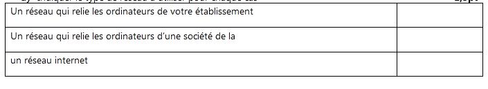 a) Indiquer le type de réseau à utiliser pour chaque cas 1,5pt