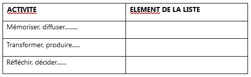 c) Sur votre feuille, recopier et compléter le tableau ci-dessous, avec les éléments de la liste suivante : système de pilotage, système opérant et système d’information. 1.5pt