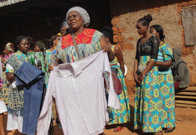 Cérémonie d’adieu, les femmes prennent quelques vêtements du défunt et se passent entre elles en pleurant © Etonleu Laure Pélagie