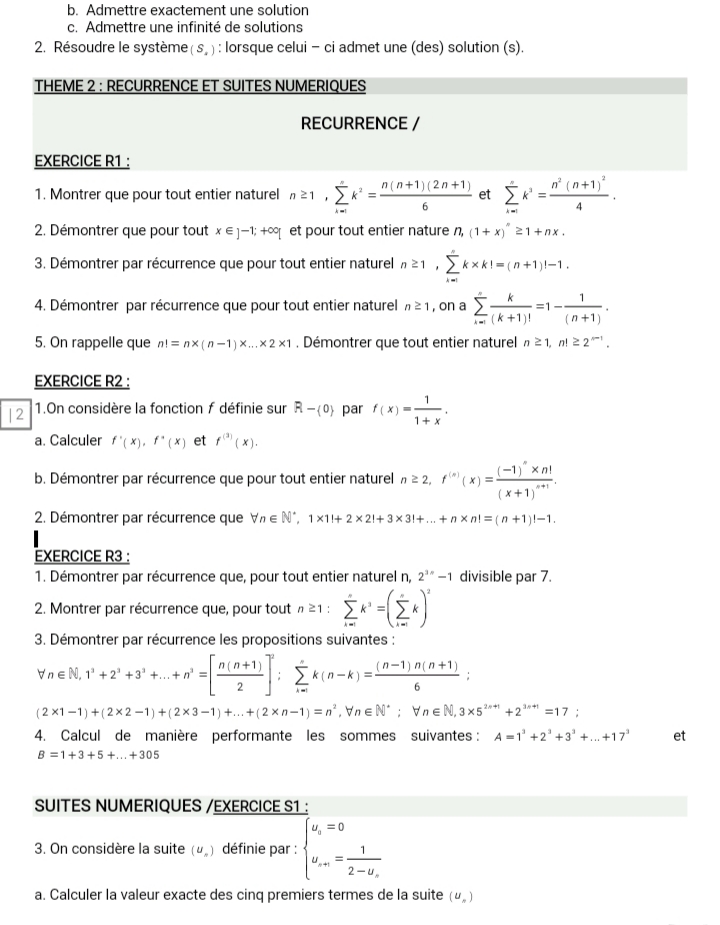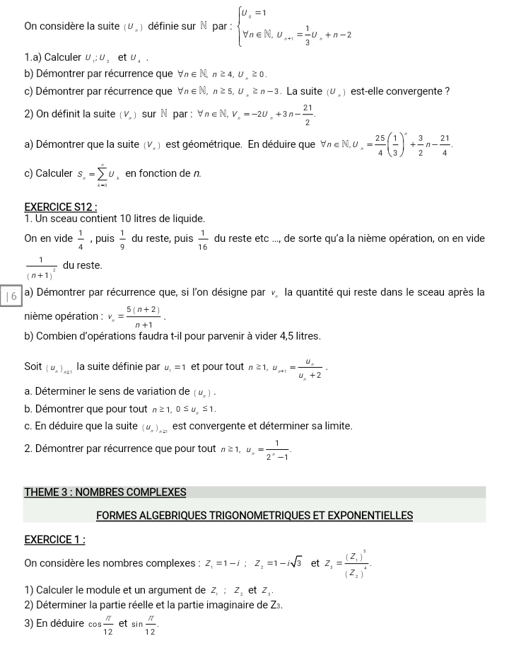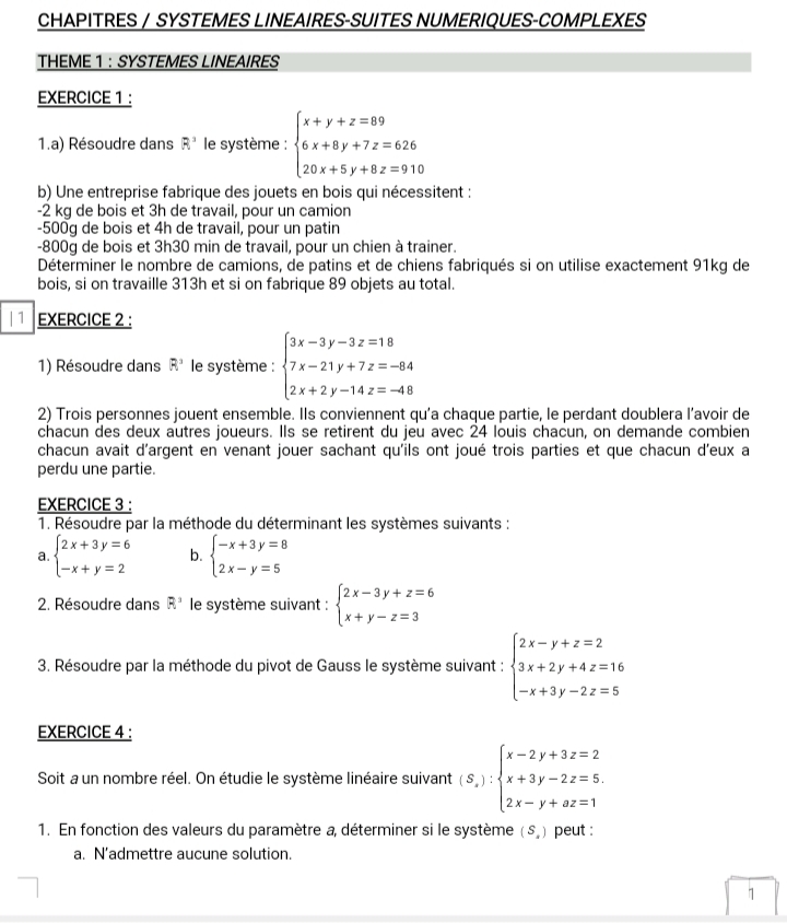 TD SYSTEMES LINEAIRES-SUITES NUMERIQUES-COMPLEXES