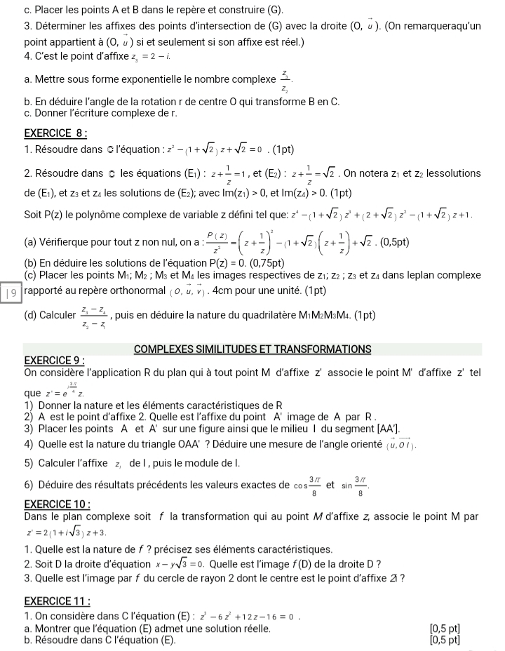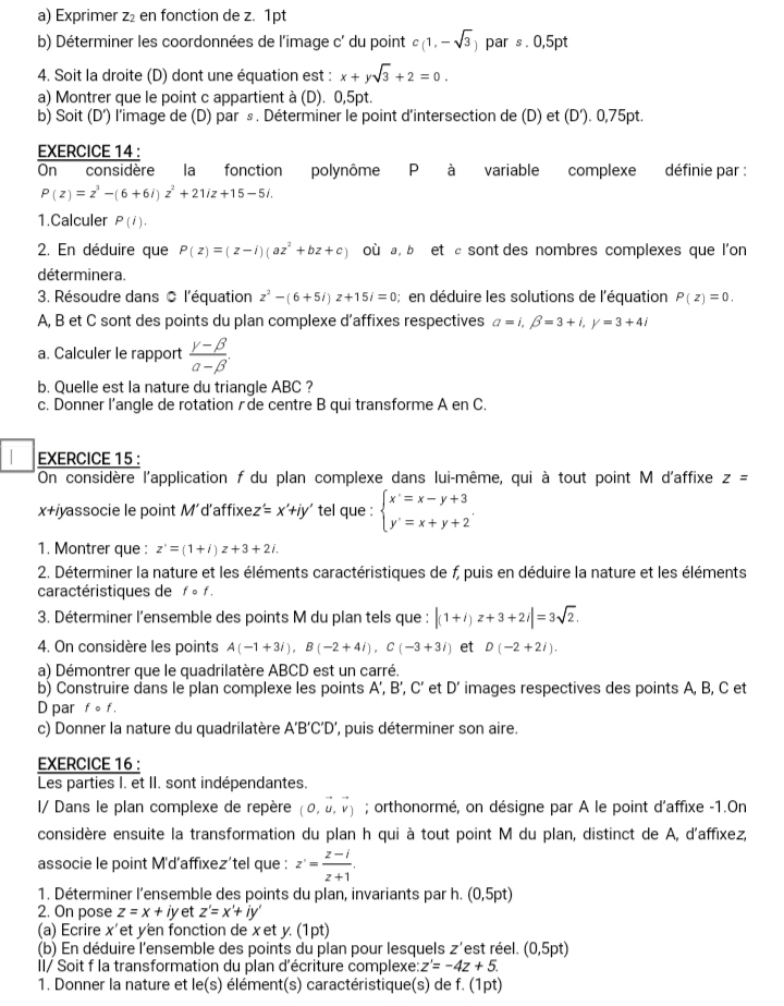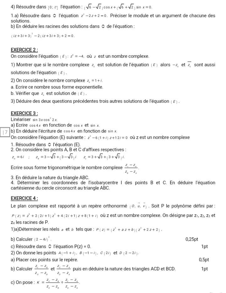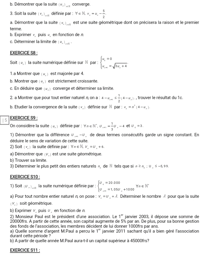 Exercices et Travaux dirigés Mathématiques Tle D