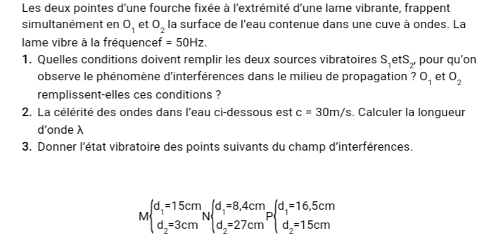 Exercice Physique onde mécanique Tle D