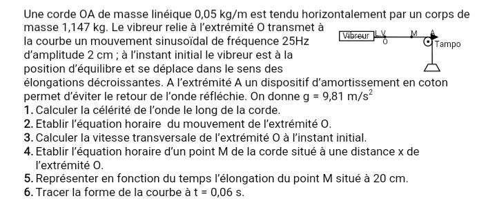 Exercice physique onde mécanique Tle D