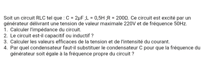 Exercice physique oscillateurs électriques Tle D