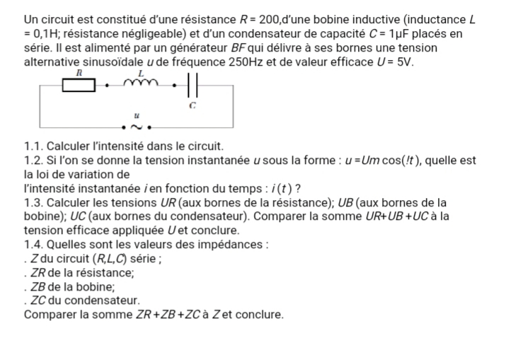 Exercice physique oscillateurs électriques Tle D
