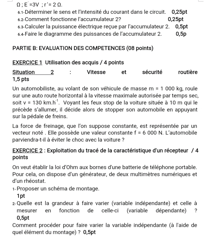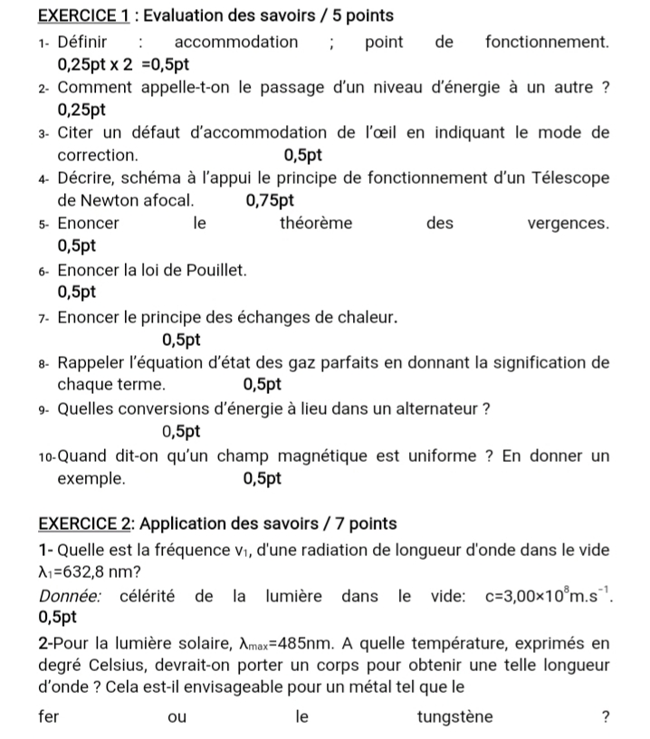 Epreuves Physique 1ère D