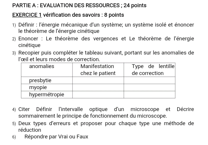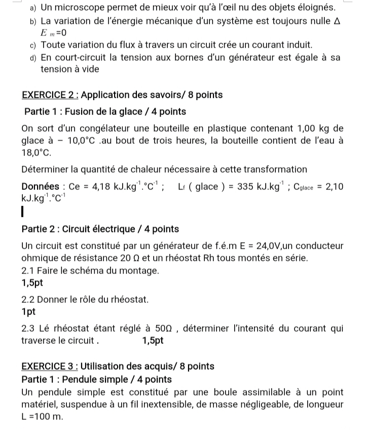 Epreuves Physique 1ère D