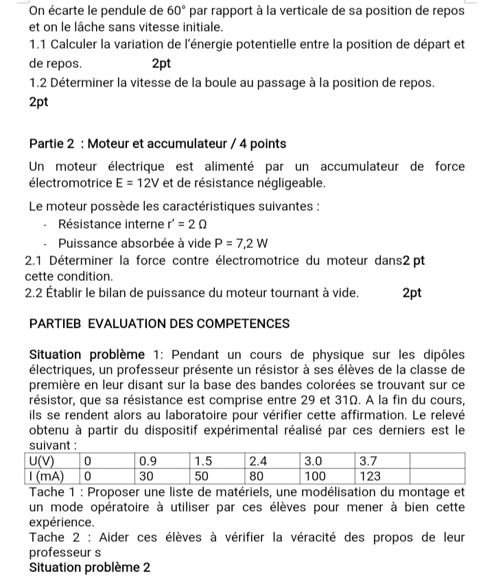 Épreuve Physique 1ère D