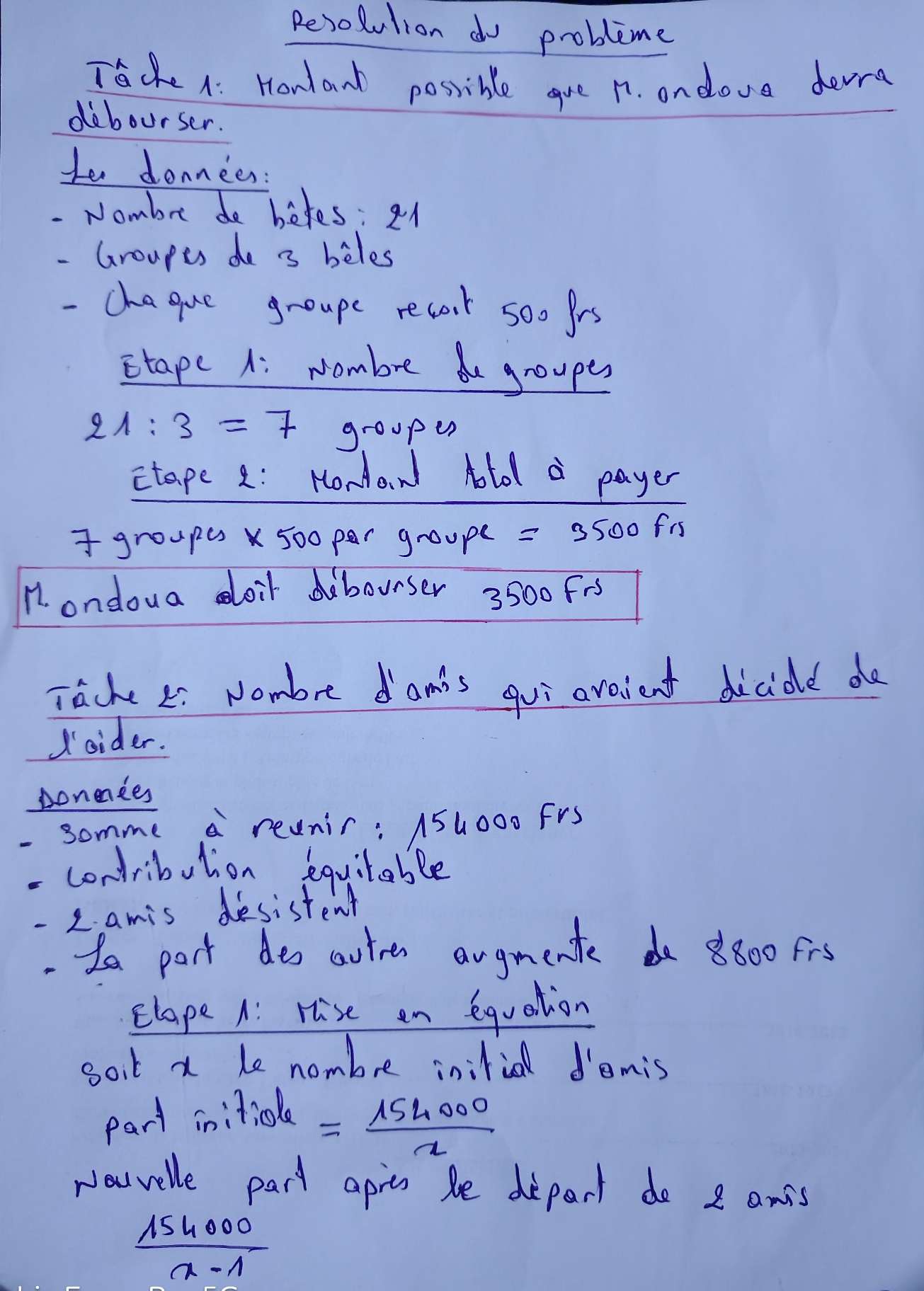 Tâche 2: Déterminer le nombre d'amis de l'éleveur qui avaient décidé de l'aider. (1.5pts)