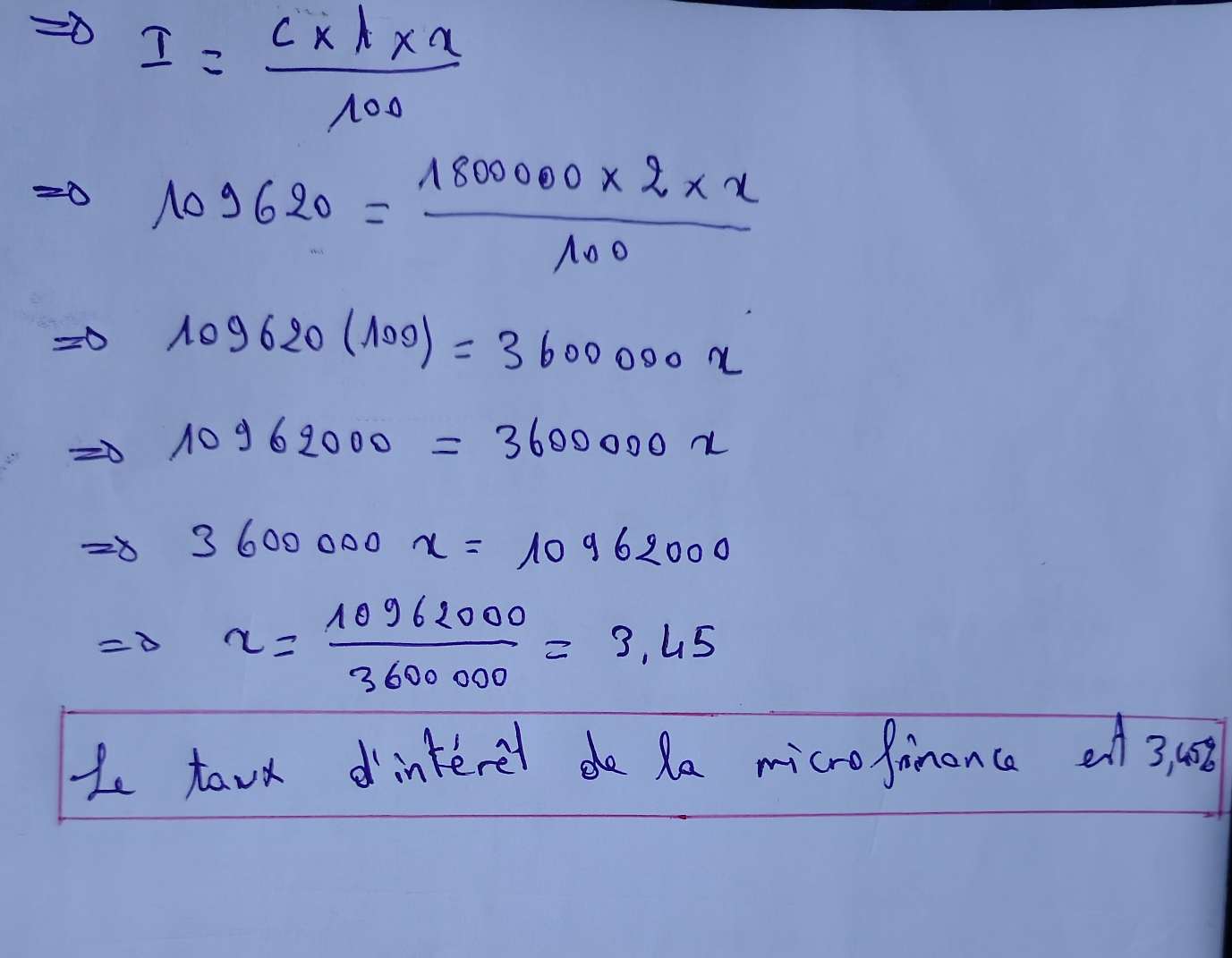 Tâche 3: Déterminer le taux d'intérêt x% de cette microfinance. (1.5pts)