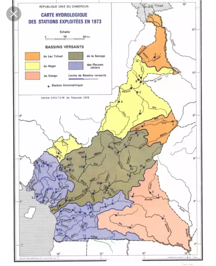 Carte des bassins hydrographiques du Cameroun