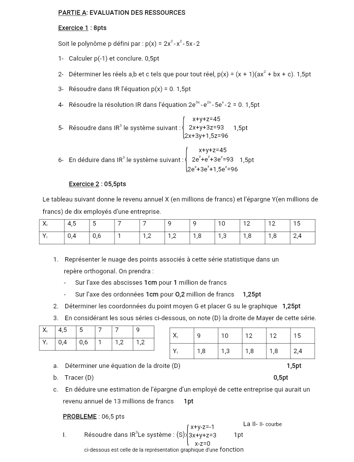 • Epreuves Mathématique Tle A4