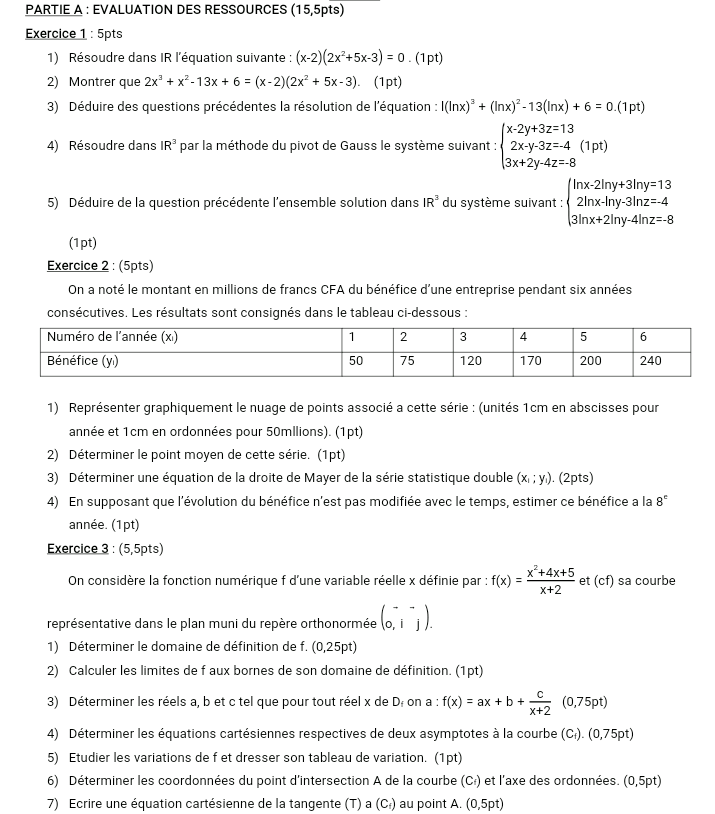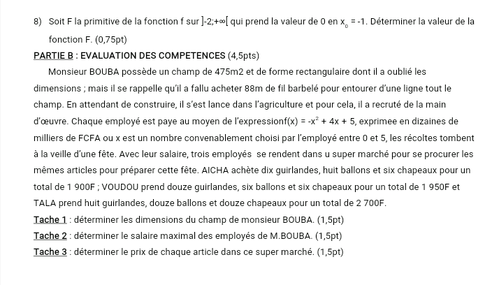Epreuves Mathématique Tle A4