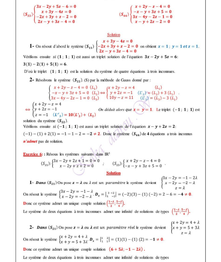 Systèmes de trois équations linéaires à trois inconnus