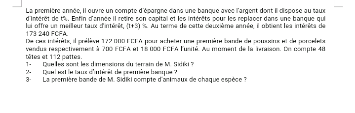 Epreuves Mathématique 1ère A4