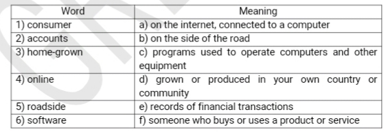 I-Match each word to its meaning. e.g 6-f