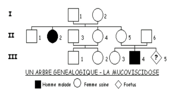 Le pédigrée ci-dessous est celui d’une famille dans laquelle deux membres sont atteints de cette maladie.