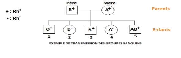 Le pédigrée ci-dessous montre la transmission simultanée des gènes du système ABO et du système Rhésus