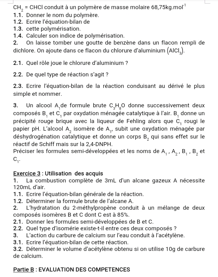 Épreuve Chimie 1ère C