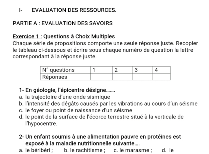 Épreuve SVTEEHB 1ère D