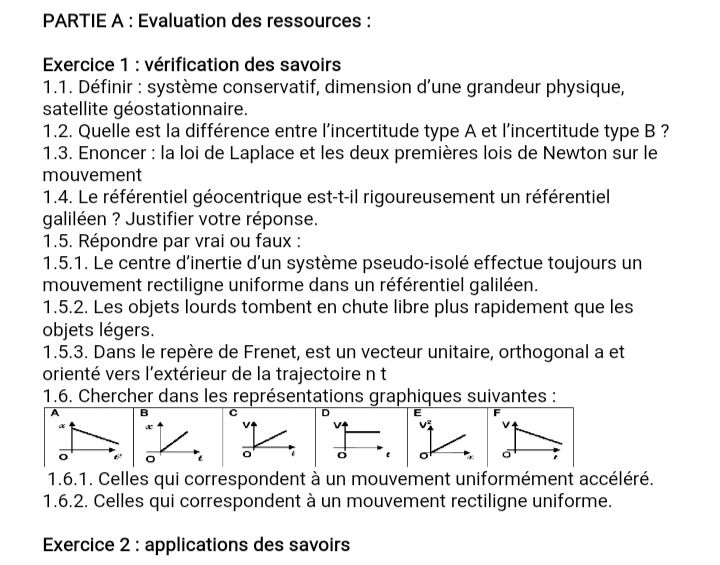 Epreuves Physique 1ère D